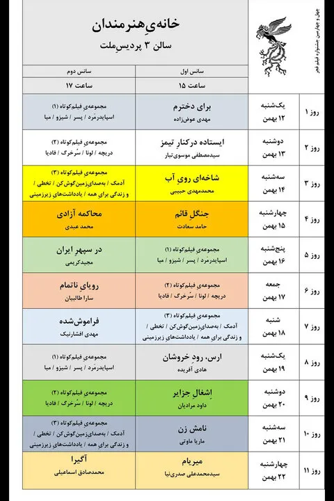 برنامه نمایش آثار در پردیس سینما ملت ویژه رسانهها