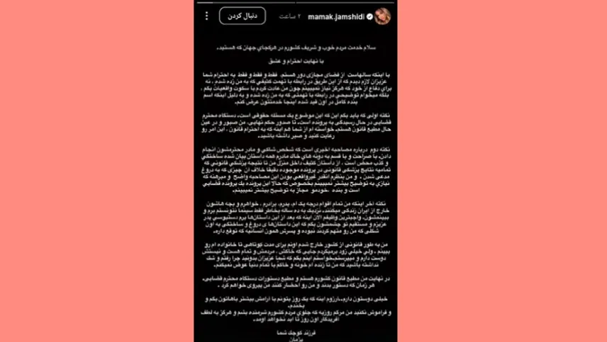 این استوری توسط خواهر پژمان جمشیدی و همچنین یکی از تهیهکنندگان تلویزیونی بازنشر شده است؛ اقدامی که از سوی کاربران به عنوان نشانهای از حمایت نزدیکان این بازیگر تعبیر شده است.